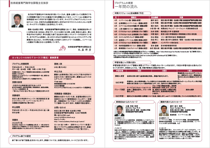 東京工業大学社会人アカデミー(実施:技術経営専門職学位課程)では、キャリアアップMOT「エッセンシャルMOTコース(平成30年度)」を開催します。