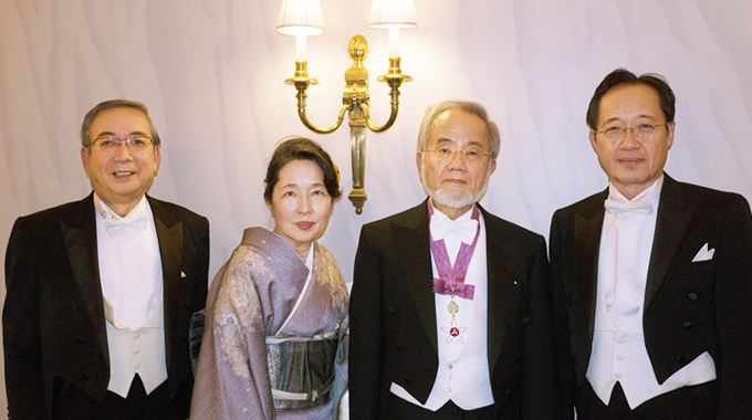 Ohsumi, together with his wife, then attended a luncheon hosted by Hirokazu Matsuno, Japan's Minister of Education, Culture, Sports, Science and Technology. Mariko Ohsumi's words during the event were particularly poignant. She explained how her husband's life in research was never plain sailing, and that there was a time when his parents became very worried. Although his parents did see Ohsumi's research get on track before passing away, she still found the awards ceremony highly emotive, knowing how proud they would have been had they witnessed the event.