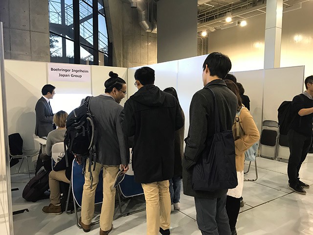 This year, Ericsson Japan (Sweden), Proctor and Gamble Japan (US), and Micron Memory Japan, G.K. (US), and 25 other companies set up booths at Centennial Hall to hold discussions with roughly 250 Tokyo Tech students attending the event.
