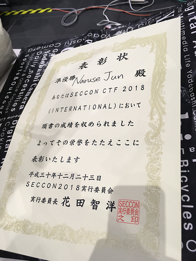 I am very pleased that we were able to achieve such a strong result at SECCON CTF 2018 International, one of the toughest cybersecurity competitions out there. It was the first international CTF contest for traP members, and comparing our skills with the strongest international teams was a challenging and stimulating experience.