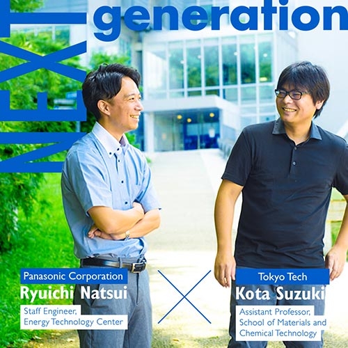 * world-leading laboratory on battery research. Both are working to bring forth the next-generation of batteries, but through different career paths. After graduation, Natsui chose to work in industry and joined Panasonic, while Suzuki chose to continue in academia at Tokyo Tech. What were their thoughts at that time? What informed their choices? What kind of future do they hope to create?