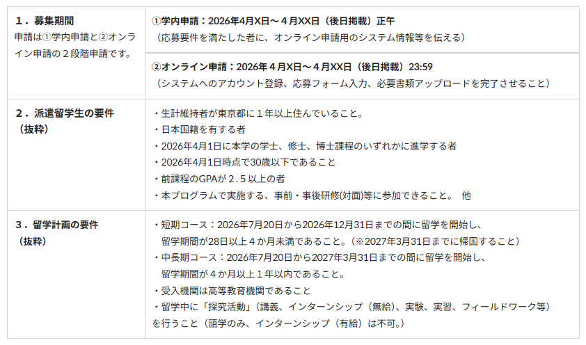 学内募集要項 ※ 2026年度留学開始のための学内募集要項を公開しました。