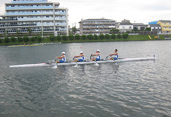 競技に使われるボートには多くの種類がありますが、大きいオールを1人1本、両手で持って漕ぐスウィープタイプと、小さいオールを1人2本、片方に1本ずつ持って漕ぐスカルタイプの2種類に大きく分けられます。今回、端艇部はスカルタイプのボートを4人で漕ぐ舵手無しクォドルプル種目に出場しました。漕手の人数は4人と多めですが舵手(コックス)が乗っていないのも特徴の2,000m種目です。