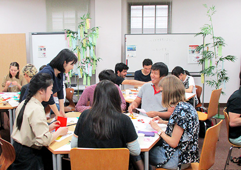 「マジック」や「ジャグリング」では、それぞれの東工大サークル部員の協力により、パフォーマンス鑑賞と体験、交流を楽しみました。「七夕」では、留学生、日本人学生、日本語セクション教職員が集い、短冊や折り紙で笹を飾りました。短冊には、「卒業できますように」「研究がうまくいきますように」「国に戻って大学の先生になれますように」「家族がずっと健康でありますように」など一人一人の願い事が綴られ、自分の気持ちを日本語で発信する機会にもなりました。