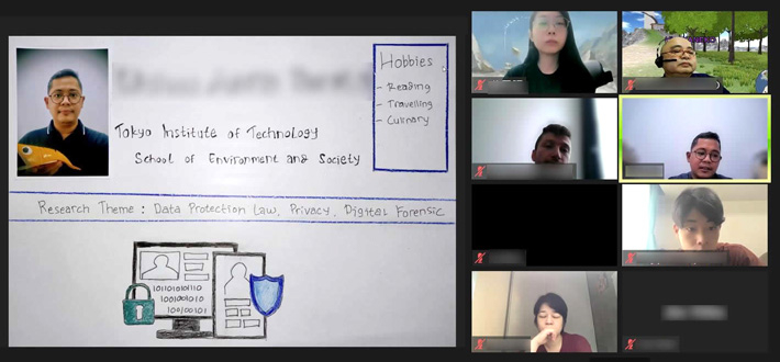 スクールの運営にあたる環境・社会理工学院 社会・人間科学系(リベラルアーツ研究教育院)の金子宏直准教授による講義の後、参加者は、事前に作成した自己紹介ポスターを紹介し、専門分野や好きな海の生き物のペーパークラフトを示しながら交流しました。