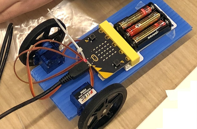 2日目の中級編では、初級編で学習したことを応用して無線通信で動く車を制作しました。